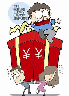 @“树树的世界”:当孩子用羡慕的口气说起幼儿园小朋友过生日的情景,我们就决定让她也在幼儿园过。原以为只是送蛋糕一起分享,可现在有家长附带给每个小朋友派发礼物,且礼物越来越好,越来越贵。真担心会滋长出相互攀比的风气。 记者追访:孩子在幼儿园过生日,除了蛋糕外,还要准备礼物、零食、小玩具,甚至专门订做带每个小朋友名字的专属物件。算下来,过个生日得千元起步。如此花费为哪般?近日,武汉得意生活网上的这个吐槽帖,引网友热议,原来深受此事困扰的家长还真不少。 家长吐槽:幼儿园过生日越来越贵 家住汉阳国信新城的张女士正为儿子5岁生日发愁。她说,本学期儿子隔三差五就会带回各种小礼物。前天,儿子带回一盒包装精美的彩笔,她特意跑到超市一看,售价18元,班上38个同学,仅彩笔一项花费将近700元。原本只准备拿出家里旧书送小朋友的她一时不知如何是好。 网友“sabrinaye”一直反对在幼儿园过生日,可今年孩子要毕业了,爷爷奶奶偷偷花600多元订了一个16寸的大蛋糕,并给女儿班上四十几个同学每人准备了一盒牛奶。加上芭比娃娃等礼物,一个普通的生日竟花费一千多元,这样下去怎么承受得起。 网友支招:小孩眼中只有喜欢,没有贵 网友“等待1980”坚持生日不送小礼物,也不会刻意在儿子面前强调谁送的礼物贵。博主“树树的世界”带孩子将收集的植物制作成小书签,过生日时当礼物。她说,让他们体会纯真的快乐和真挚的情谊就好。 武昌东亭幼儿园园长魏国艳介绍,去年起,该园就禁止外带食品。小朋友生日当天,老师都会带着大家唱生日歌表演节目。同时,考虑到家长的心情,该园准备自制蛋糕,每月给该月份出生的孩子集中过生日,这样既保证了食品安全,也让孩子们分享同伴之间成长的快乐。 |