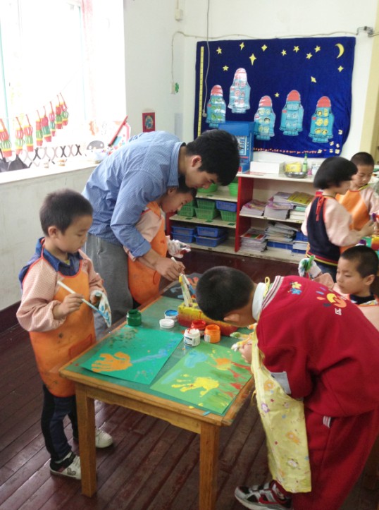 浙江在线·教育新闻网 幼儿园引进男教师有利于幼儿在成长初期形成健康、平等的两性角色意识,促进个性全面和谐发展。但是,目前宁波市的男幼师数量却不容乐观。据市教育局2011年的统计,宁波市幼儿园专任教师为15095人,其中专任男教师仅94人。通过采访记者了解到,这些耕耘在幼教田野上的小伙子们普遍表示热爱自己的职业,并以孩子们的健康快乐为自己的职责。 ![]() 徐晓锋悉心指导孩子们绘画