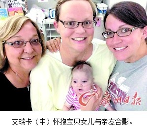 三个月大的美国女婴艾莉娜堪称“奇迹宝宝”,因为她的妈妈在失去呼吸、心跳的情况下生下她,然后再奇迹地“死而复生”。 心脏停跳 艾莉娜的母亲艾瑞卡今年32岁,在密苏里州得克萨斯城一所中学任教。今年2月,怀有身孕的艾瑞卡在学校上课时突然晕倒。 等艾瑞卡被送到医院后,她的心脏停止了跳动。医生决定,通过紧急剖腹产,来尝试挽救孩子的性命。在技术上,这属于死后分娩。 “医生告诉我,当孩子出生时,艾瑞卡已经没有了心跳。但是我与一个战斗士结婚,我的女儿也是一个斗士。”艾瑞卡的丈夫奈斯说。 孩子出生后,医生决定重新抢救艾瑞卡。让人感到惊讶的是,艾瑞卡的心脏很快恢复跳动。医师利用药物诱导艾瑞卡昏迷5天,并诊断出她罹患了肥厚型心肌病。 艾莉娜出生后在加护病房待了两周,不过她如今已经可以吸着奶嘴躺在母亲的大腿上。如今她已经长到3.62千克,虽然仍需要戴着氧气罩,但医生认为她已经完全康复。 艾瑞卡和奈斯打趣说,如果女儿不守规矩,他们只要提醒她,爸爸妈妈历经了哪些难关,才把她带来这个世界。一家三口24日做客美国有线电视新闻网一档电视节目。奈斯在节目中说:“我们感觉很棒,有一个不错的宝贝,我的妻子已经百分之百恢复了。” |